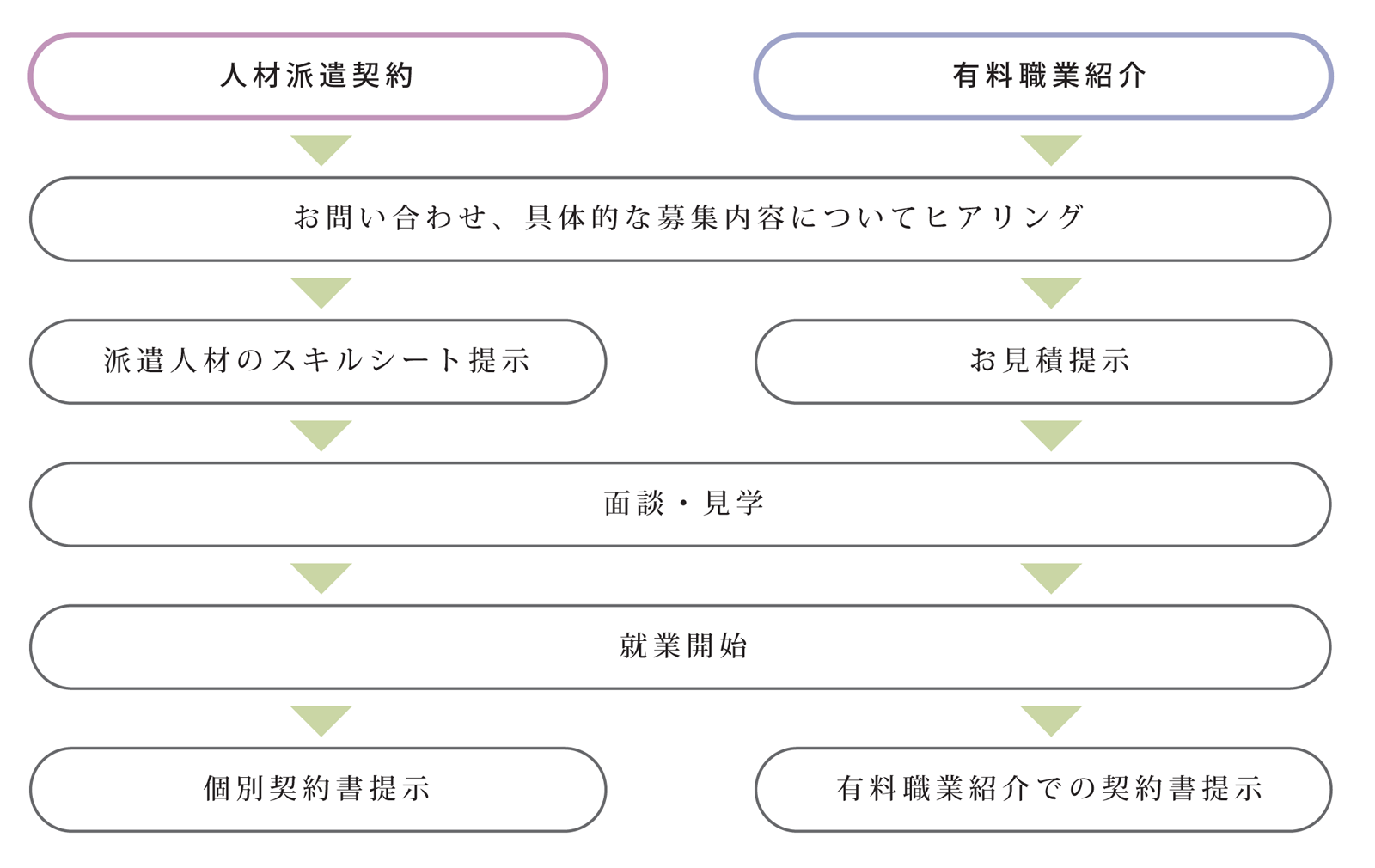 お問い合わせ後、業務内容についてのヒアリングを通して就業内容や業務内容が変更となっても人材と就業開始時期をご提案いたします。